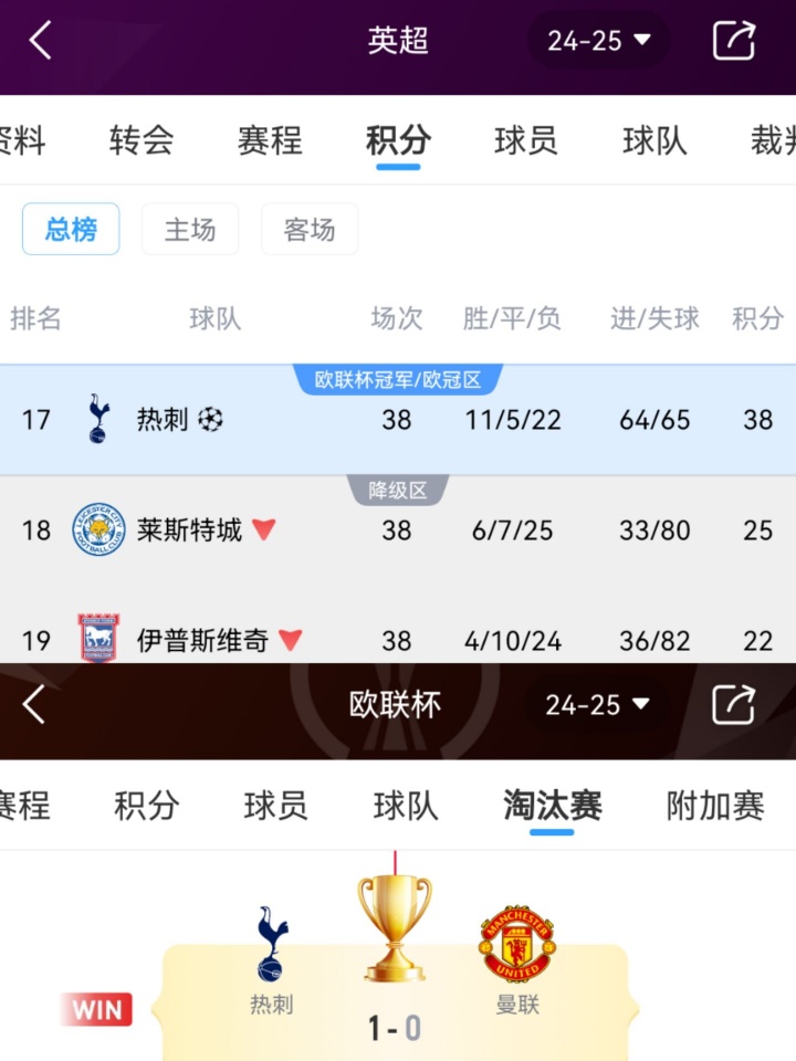 热刺上赛季成绩↓